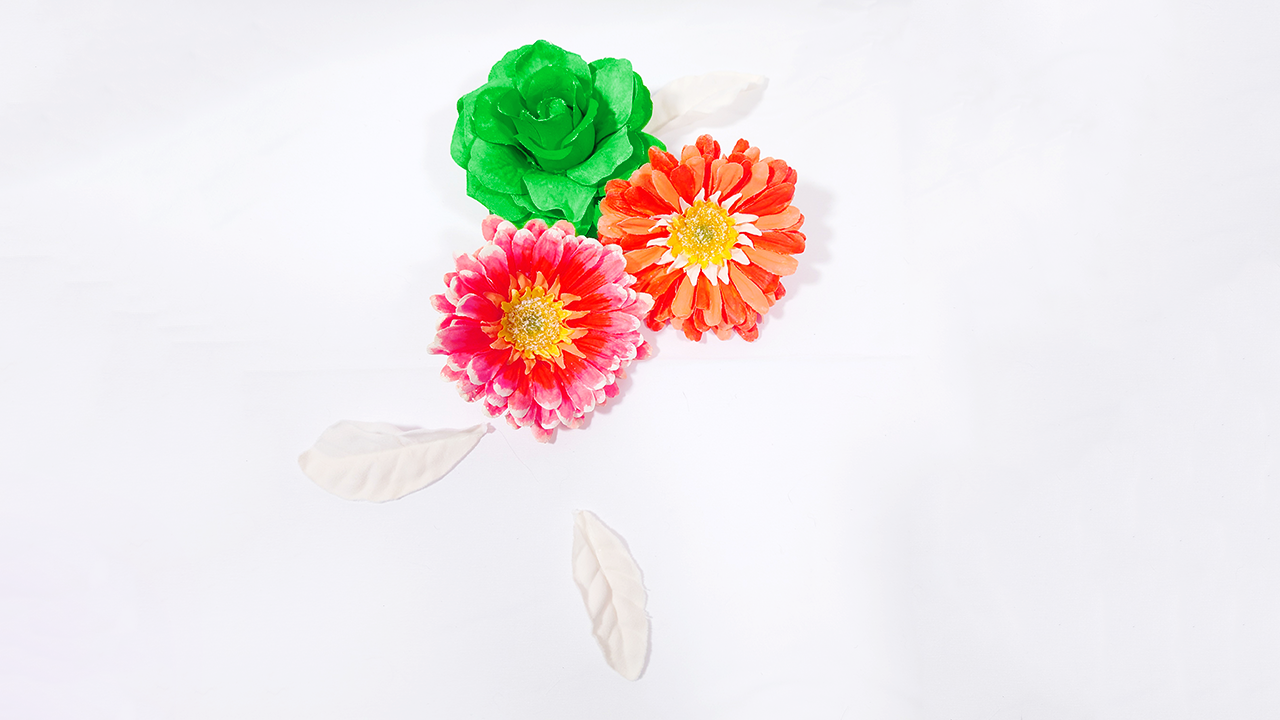 また、自然な花では難しい色の組み合わせも、造花なら自由に表現ができます。