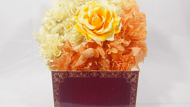 楽屋花アレンジ/5色の色分けアレンジ+フリル装飾/イメージ図/Yatsugi Flower Dye Lab(八ツ木フラワーダイラボ