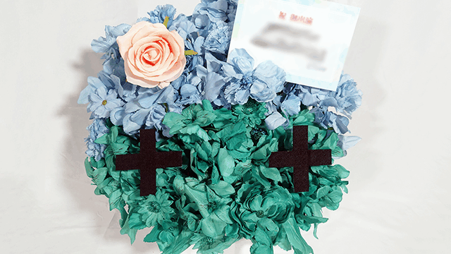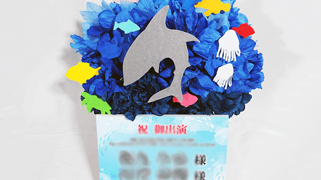 楽屋花アレンジ/5色の色分けアレンジ+フリル装飾/Yatsugi Flower Dye Lab(八ツ木フラワーダイラボ