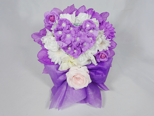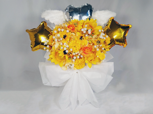 楽屋花/ミニフラスタ/羽とバルーンの1段イエローミニフラスタ/Yatsugi Flower Dye Lab(八ツ木フラワーダイラボ)