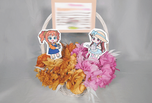 特注制作手付きカゴの2色濃淡アレンジ ◆手付きカゴの2色濃淡アレンジベースタイプ:特注制作・手付きカゴ(全体40㎝) ベースカラー:オレンジ濃淡プラスカラー:ピンク濃淡・白お祝い札・キャラパネル:データ持込み・当店印刷□参考価格:18,0... 2025.11.01特注制作